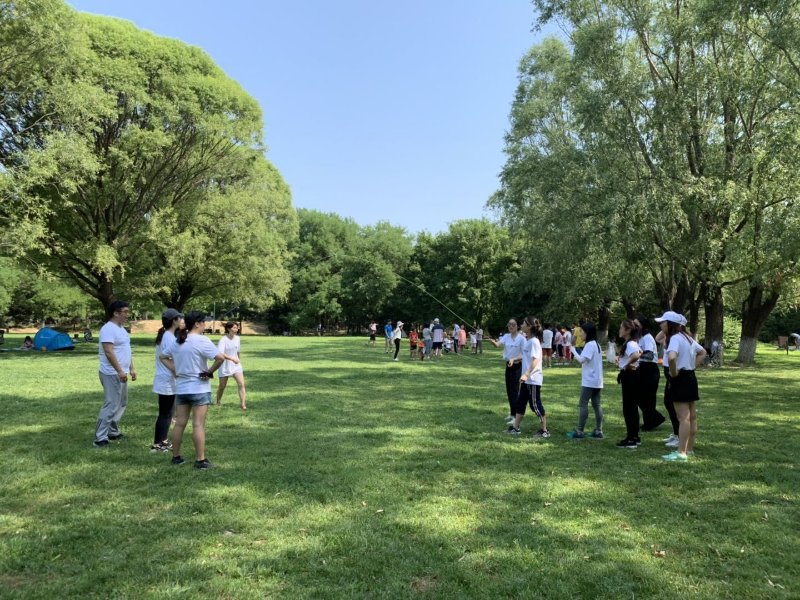 健步走活動結束后,所有員工來到公園東門草場空地,以部門為單位進行野餐,并開展籃球賽等各種活動和游戲,歡樂的笑聲此起彼伏。
