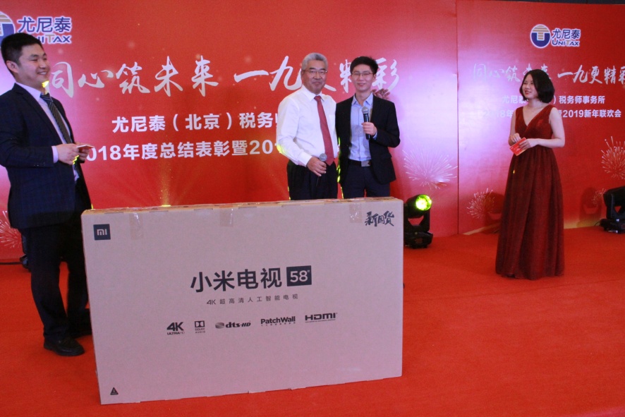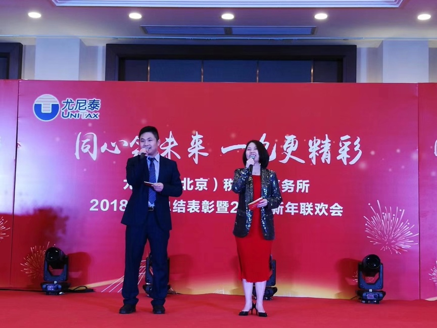 暖陽(yáng)高照,揮別二〇一八,張燈結(jié)彩,喜迎乙亥豬年。2019年1月24日下午,尤尼泰(北京)稅務(wù)師事務(wù)所2018年度總結(jié)表彰暨2019新年聯(lián)歡會(huì)在龍熙維景國(guó)際會(huì)議中心成功舉辦。